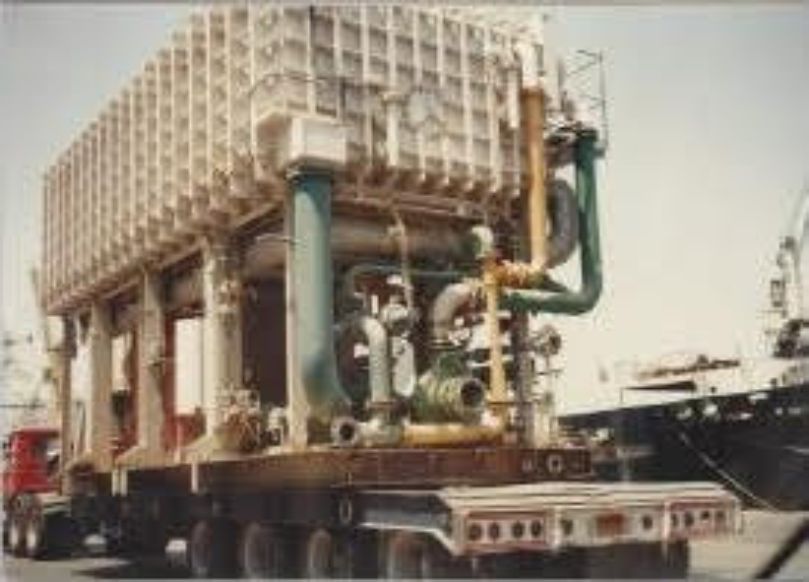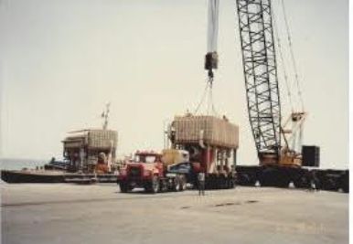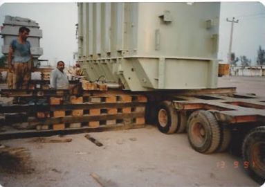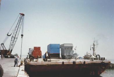 ROAD AND SEA TRANSPORT BY HEAVY LIFT TRAILERS FROM THE POWER PLANT IN BANDAR ABBAS CITY TO THE PORT YARD OF BANDAR ABBAS. LOADING ON THE HEAVY FLAT BARG AND TRANSPORT BY SEA TO THE PORT BANDAR BUSHIRE, IRAN. DISCHARGE TO THE PORT YARD OF BUSHIRE CITY AND LOADING ON HEAVY LIFT TRAILER FOR ROAD TRANSPORT FROM BUSHIRE PORT TO THE SITE OF BUSHIRE POWER PLANT. DISCHARGE FROM HEAVY LIFT TRAILERS ONTO THE FOUNDATIONS OF POWER PLANT IN BUSHIRE CITY BY SPECIALIZED PERSONNEL TEAMS FROM BUSHIRE BUOY SHIPPING SERVICES.